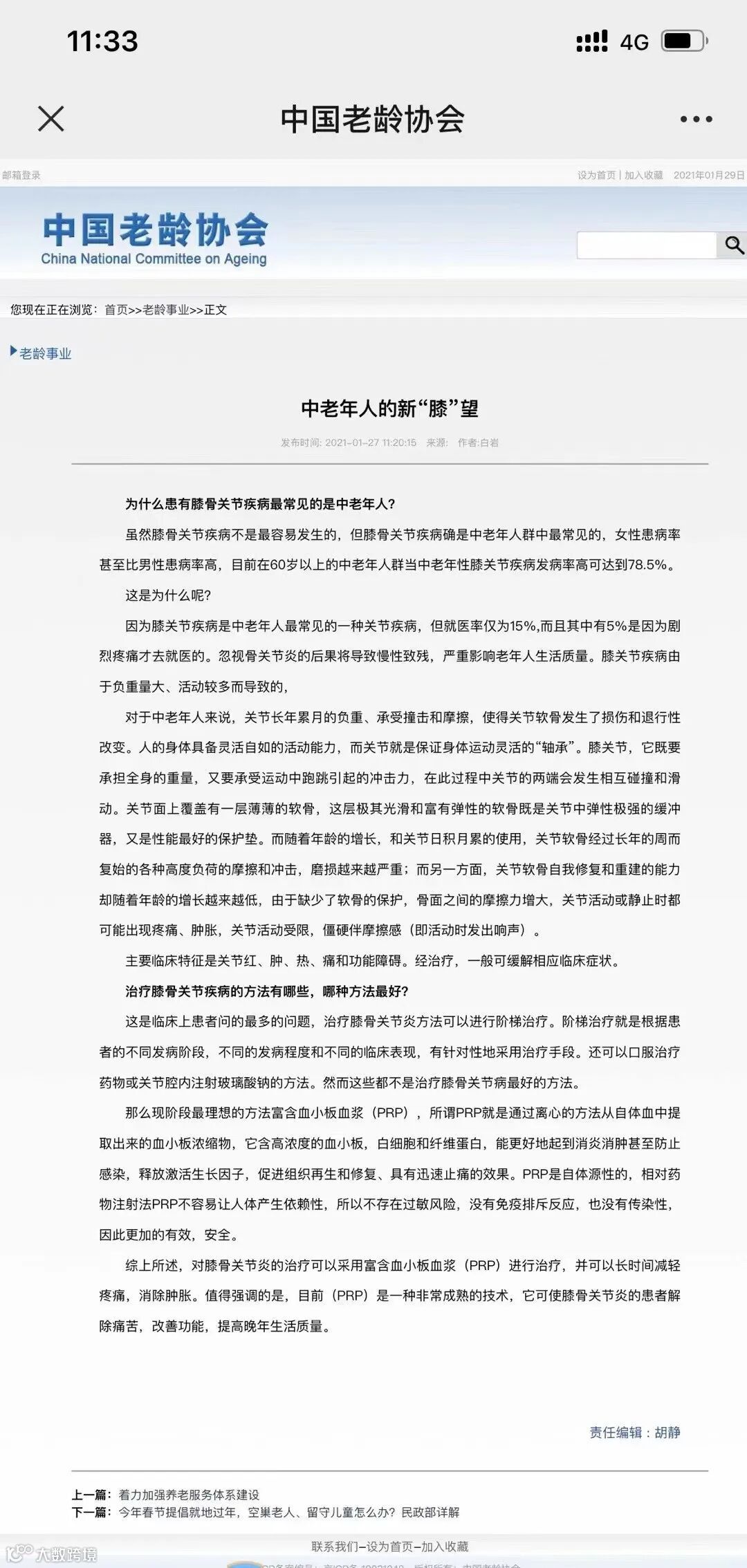 因为膝关节疾病是中老年人最常见的一种关节疾病,但就医率仅为15%,而且其中有5%是因为剧烈疼痛才去就医的。忽视骨关节炎的后果将导致慢性致残,严重影响老年人生活质量。膝关节疾病由于负重量大、活动较多而导致的。
