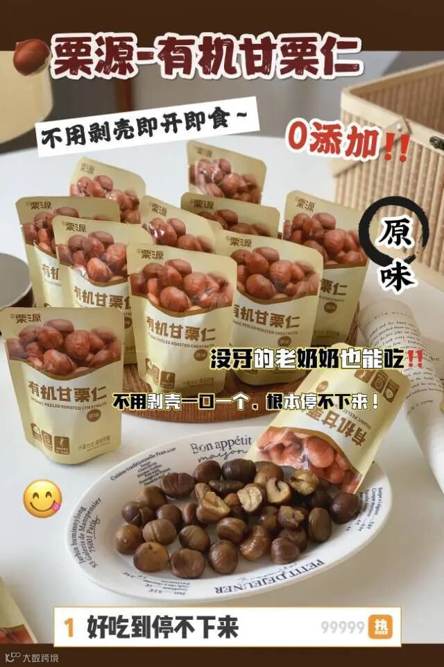 ▫️一口气能吃几包的零食 即食板栗仁真的是懒人之光打开就能吃!原汁原味小小的一包,分量刚刚好解馋 又不用担心一下子控制不住吃太多- 己经列入冬日必囤零食清单 健康小零食/板栗爱好者必买 是真正健康营养的绿色食品