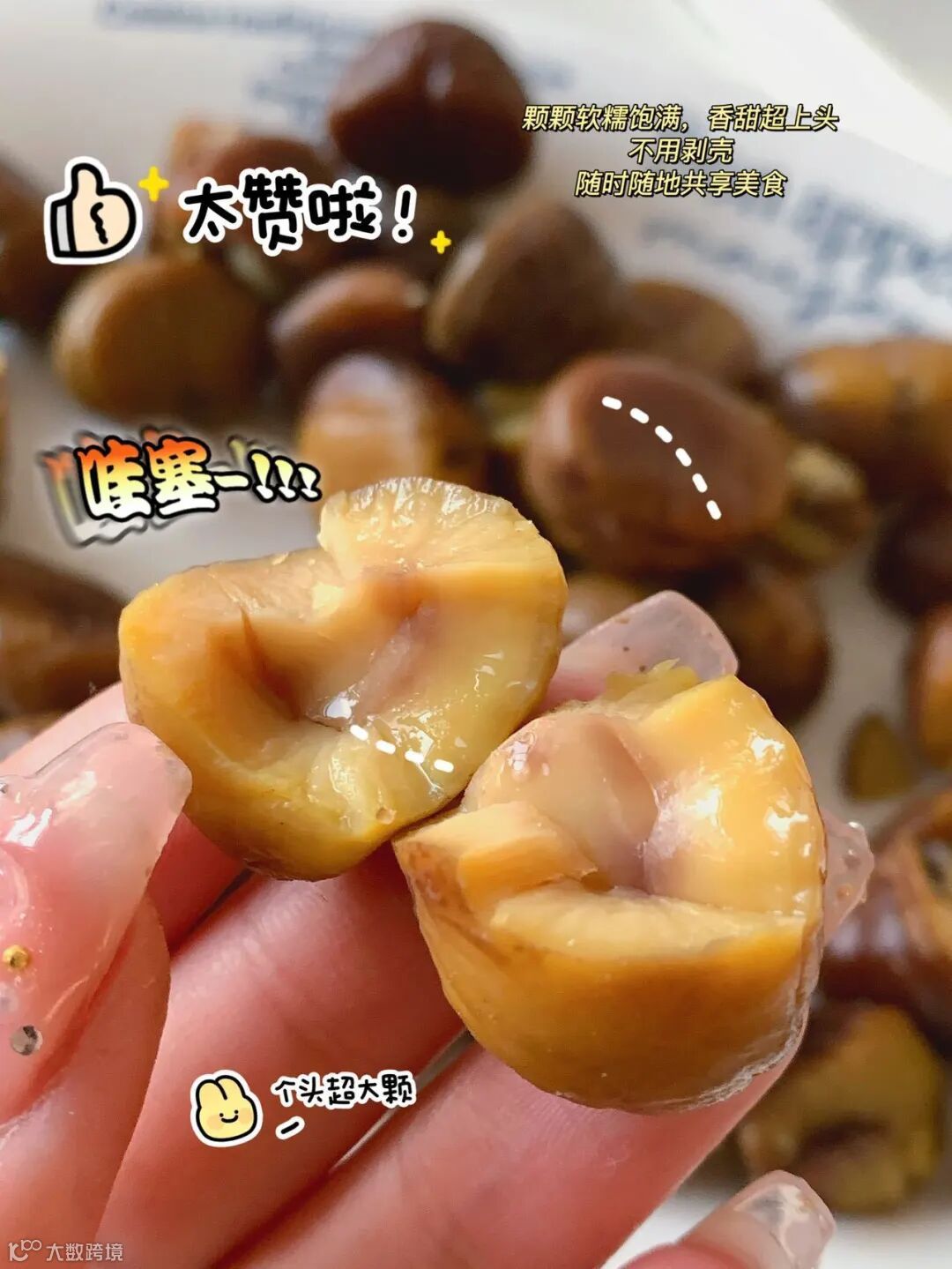 👉来看看咱们的实拍!👉这个头,这软糯的果实,谁看了不咽口水呢 ❌不是糖精味道!一口放进嘴里,甜甜糯糯的 口感非常自然,什么都没加 😍吃在嘴里完全就是板栗的本身清甜味儿!