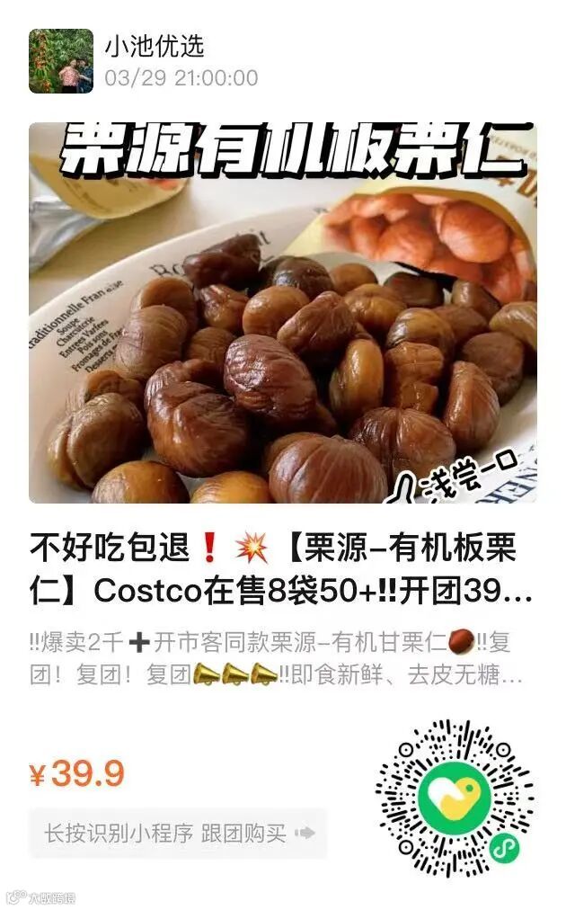‼️爆卖2千➕开市客同款栗源-有机甘栗仁🌰 ‼️复团!复团!复团📣📣📣 ‼️即食新鲜、去皮无糖的有机板栗仁 只有2900多单现货!!好不容易抢到的货!快来捡漏❗❗