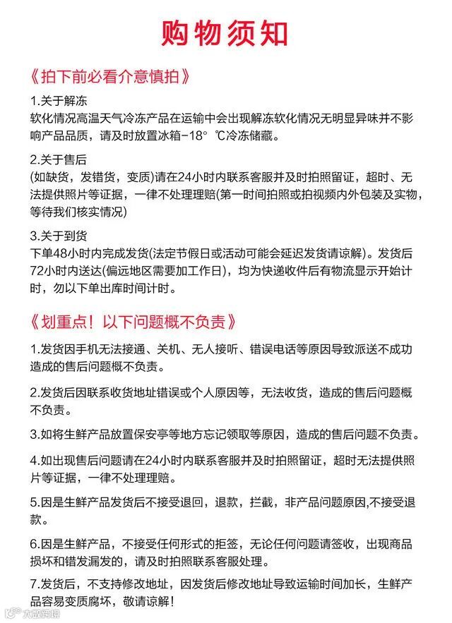 【储藏方式】冷冻保存,收到后务必放冰箱冷冻
