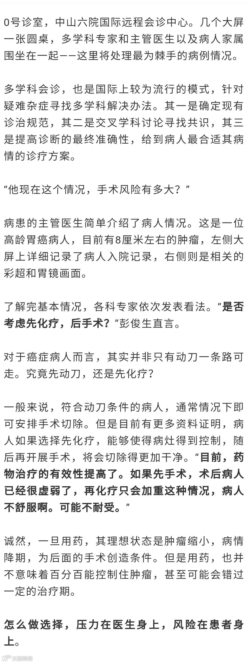 “无论如何,我想坚持一点,大家不要为了手术而手术。不是说外科医生就是个做手术的。我们的最终目的,都是希望能延长病人的生存期,从而提高病人的生活质量。”简而言之,就是能活久一点,能活得好一点。
