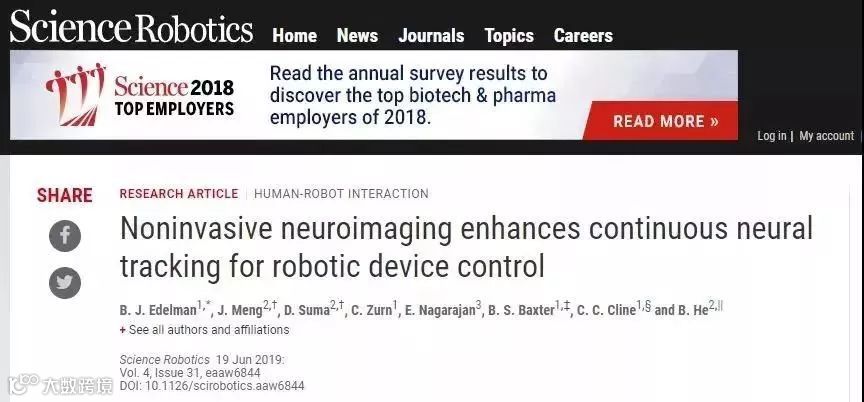 你们一定还记得前不久顶尖学术刊物《科学》杂志公布:美国卡内基梅隆大学教授贺斌团队开发出了一种可与大脑无创连接的脑机接口,能让人用意念控制机器臂连续、快速运动。