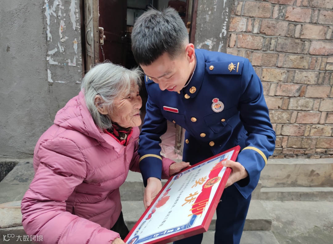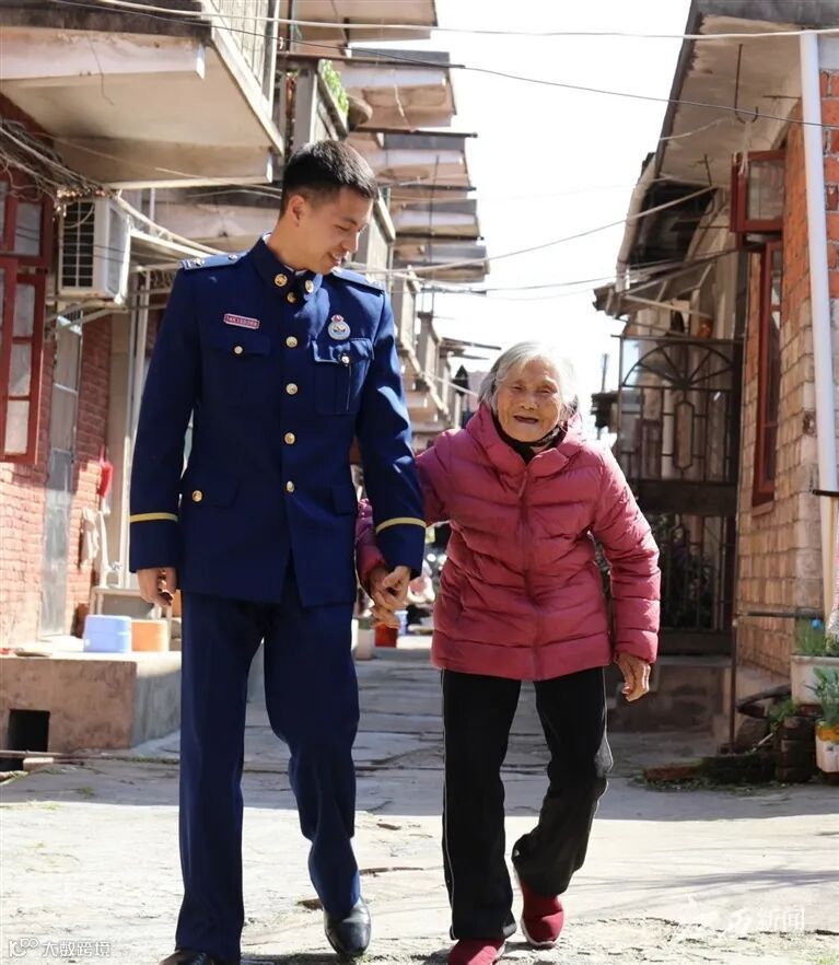 ▲张佳港与外婆分享立功的喜讯,外婆嘱咐他要好好干。