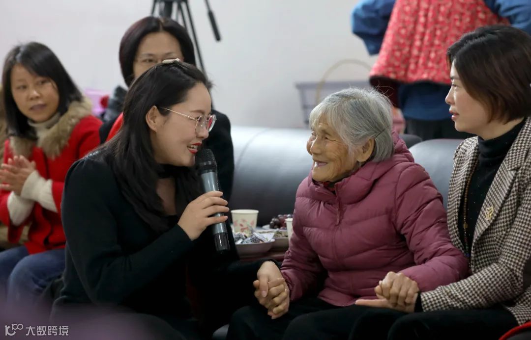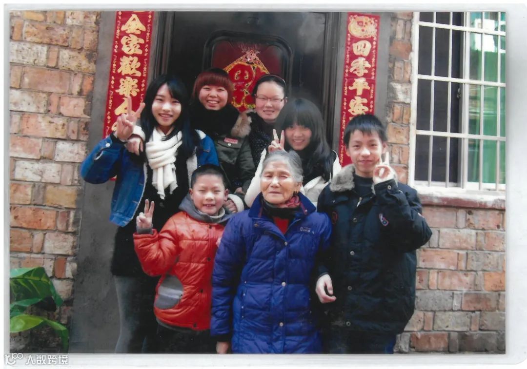 ▲唐才英老人和她的孩子们。(右一为张佳港)