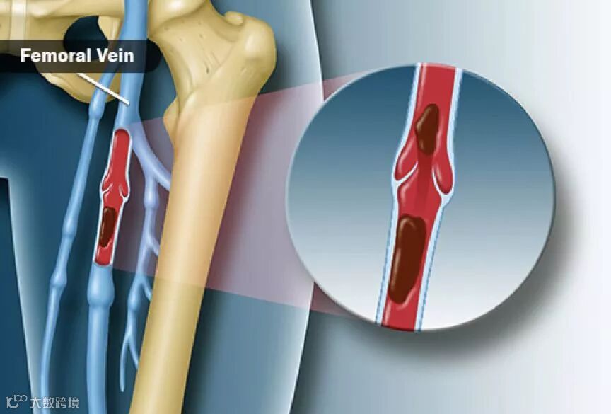 下图是大腿长静脉里的血块,通常不会有症状,但有时腿会肿胀、发红和疼痛。股静脉凝块的发生有许多原因:手术后卧床,或者久坐,服用避孕药,或者有过深静脉血栓。
