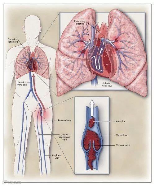 颈部的两组颈静脉将血液从头部和颈部的血液带回心脏。当你在这些静脉中埋有导管时,血栓容易形成。癌症、手术或使用静脉注射药物也会导致颈静脉血栓形成。这些凝块可能会散开,流到你的肺部,变成PEs。