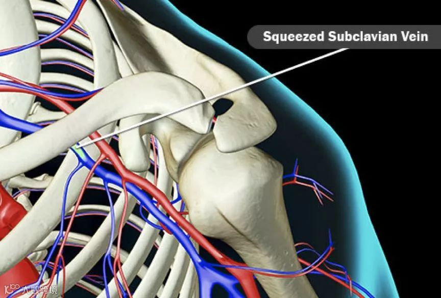 这是一种罕见的深静脉血栓,通常发生在经常使用上臂运动的年轻健康人群,如游泳和打棒球。静脉会被周围的肌肉挤压。这种压力,再加上反复的运动,会导致肩膀上出现血栓。肿胀、胸痛和皮肤呈蓝色等症状可能会突然出现。如果不立即治疗会很严重。