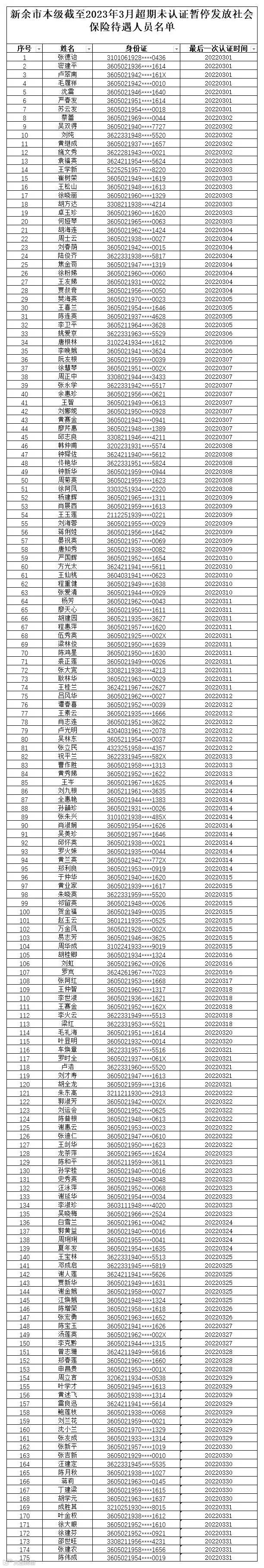 附件:新余市本级截至2023年3月超期未认证暂停发放社会保险待遇人员名单