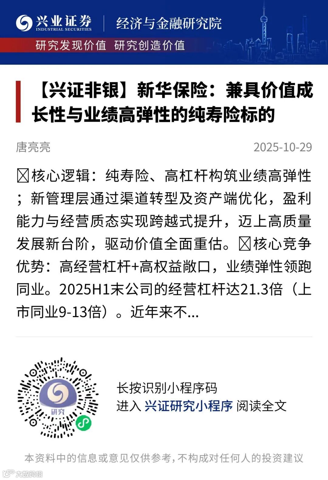 证券研究报告:《新华保险:兼具价值成长性与业绩高弹性的纯寿险标的》
