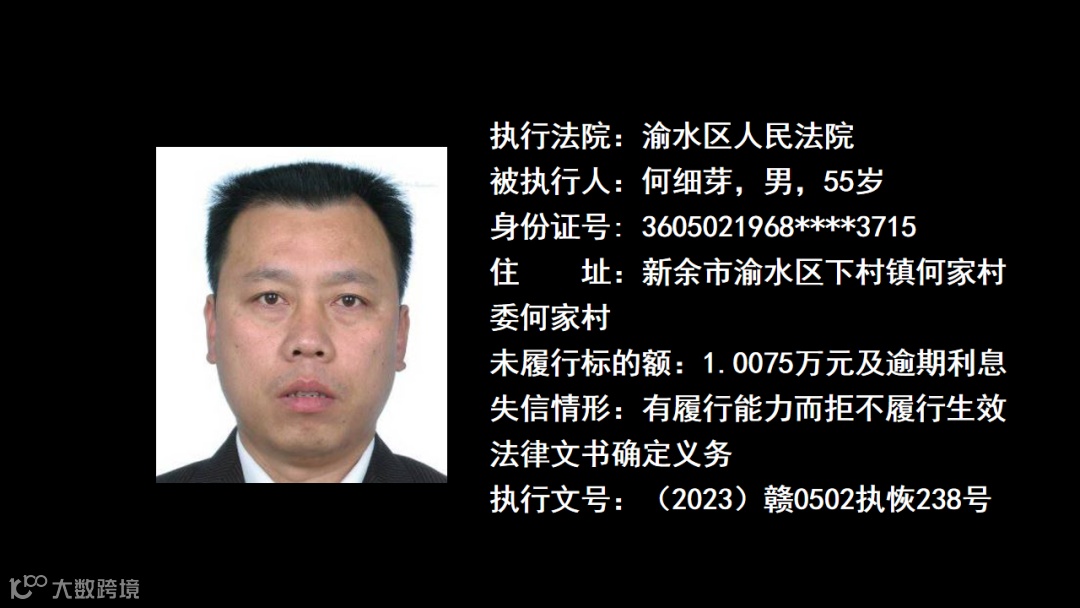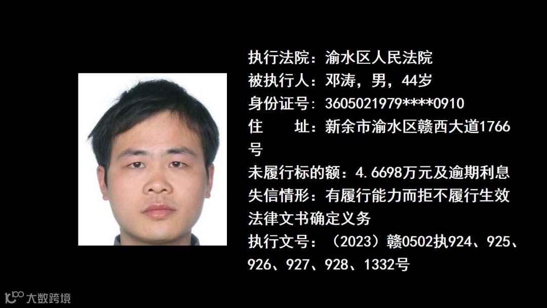 为保护申请执行人的合法权益,促进被执行人自觉履行生效法律文书确定的义务,推进社会信用体系建设,弘扬诚信、惩戒失信,根据《最高人民法院关于公布失信被执行人名单信息的若干规定》,经渝水区人民法院认真梳理,现对9名失信被执行人予以公布。