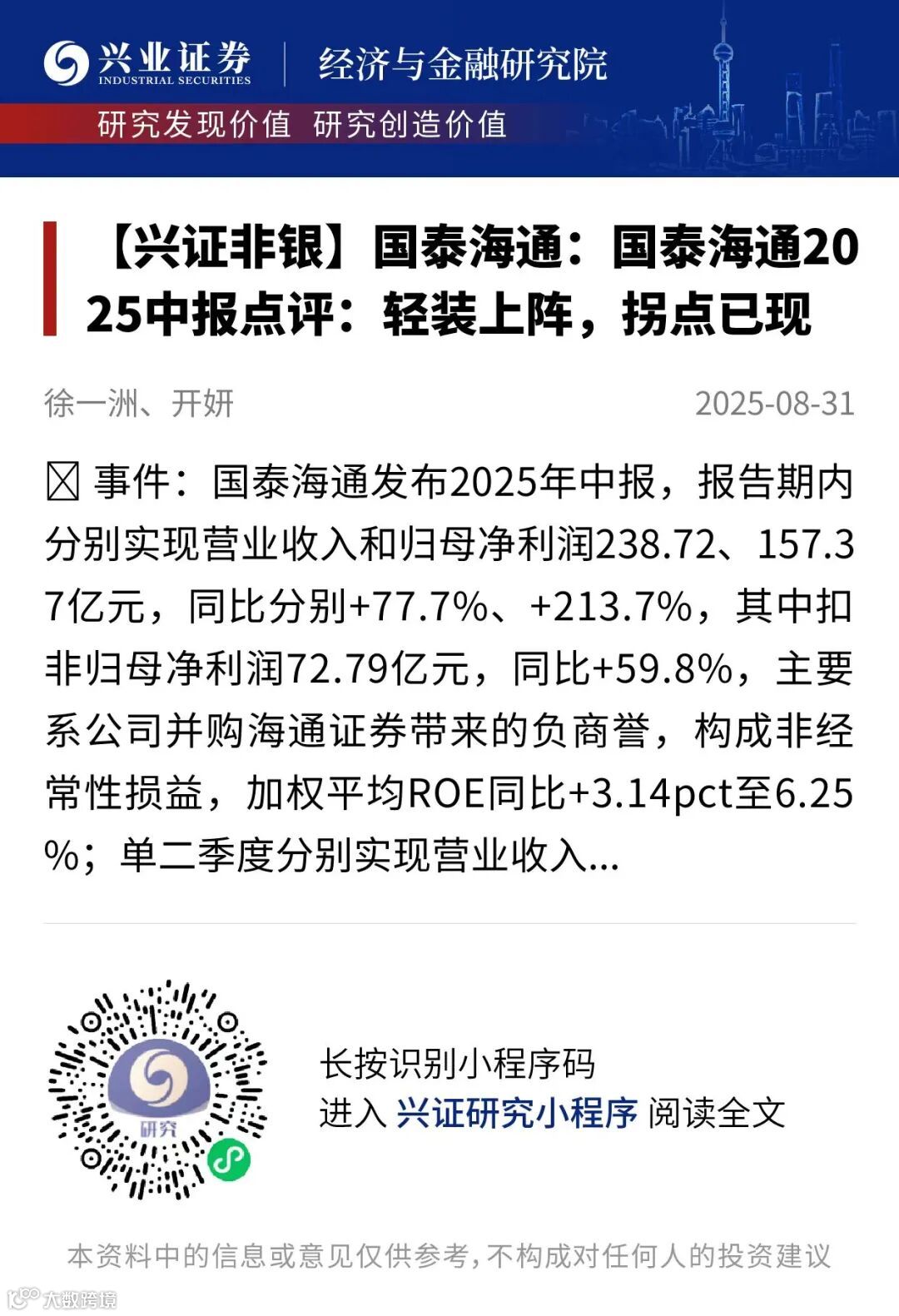 证券研究报告:《国泰海通2025年中报点评:轻装上阵,拐点已现》
