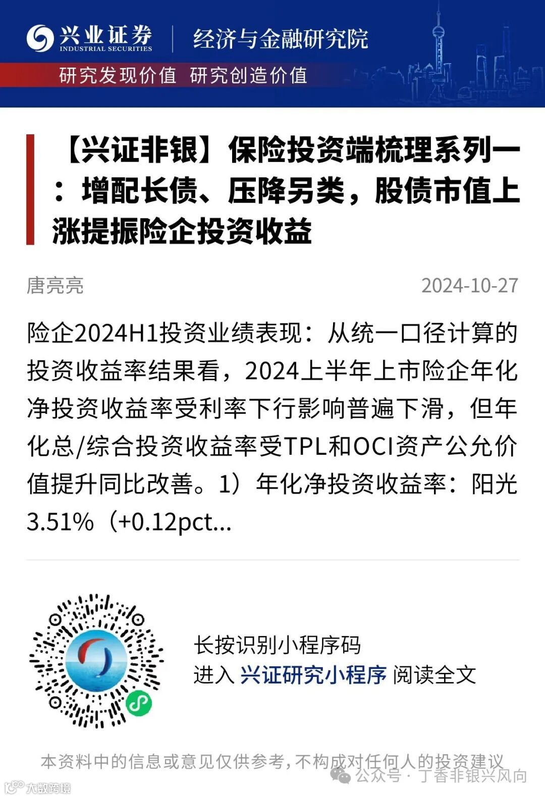 本平台旨在沟通研究信息,交流研究经验,不是兴业证券股份有限公司研究报告的发布平台,所发布观点不代表兴业证券股份有限公司观点。任何完整的研究观点应以兴业证券股份有限公司正式发布的报告为准。本平台所载内容仅反映作者于发出完整报告当日或发布本平台内容当日的判断,可随时更改且不予通告。