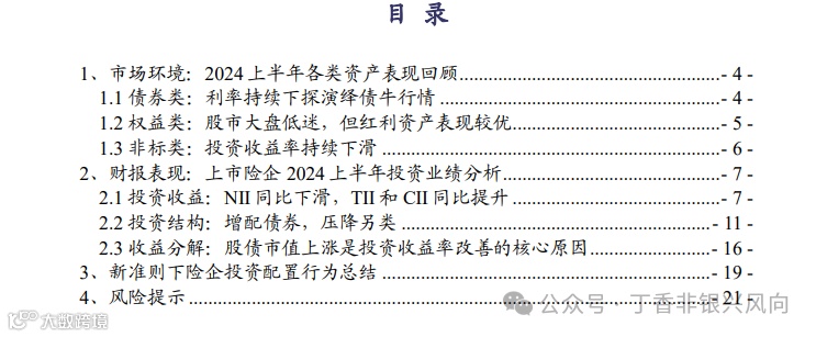 我们在《保险投资端梳理系列一:增配长债、压降另类,股债市值上涨提振险企投资收益》中详细分析了上市险企24上半年新准则下的投资业绩、驱动因素分解以及配置行为变化,欢迎阅读!