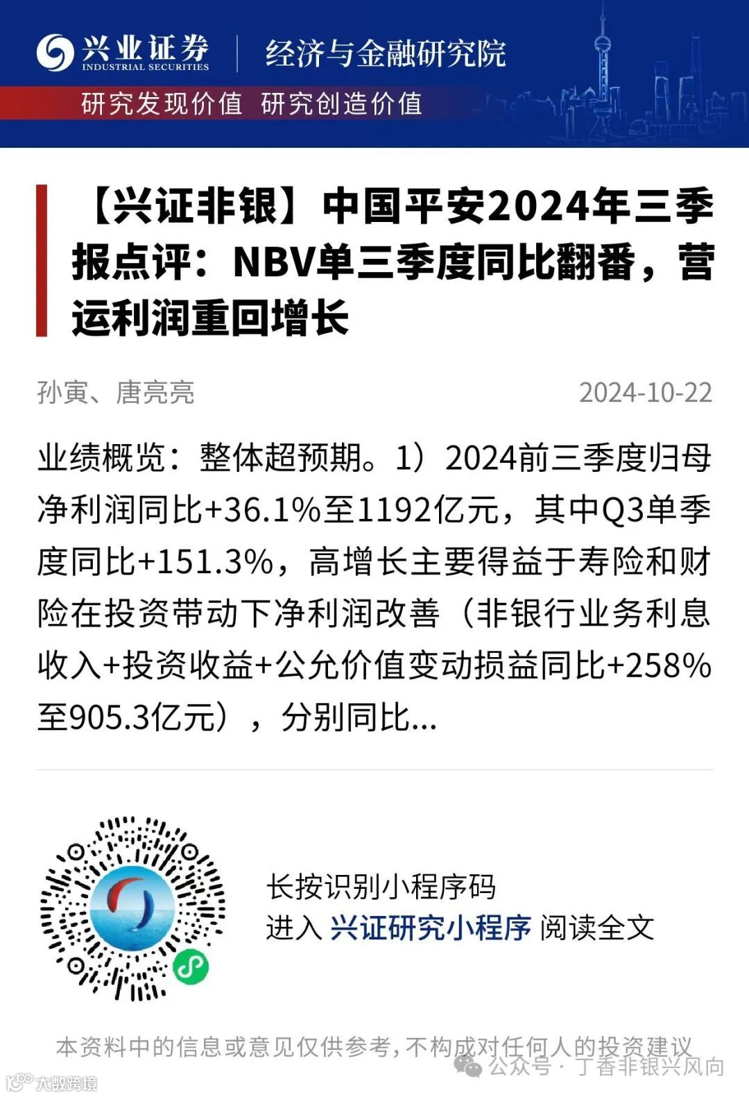 证券研究报告:《中国平安2024年三季报点评:NBV单三季度同比翻番,营运利润重回增长》