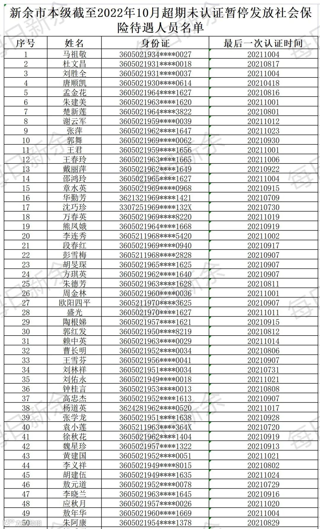 附件:新余市本级截至2022年10月超期未认证暂停发放社会保险待遇人员名单