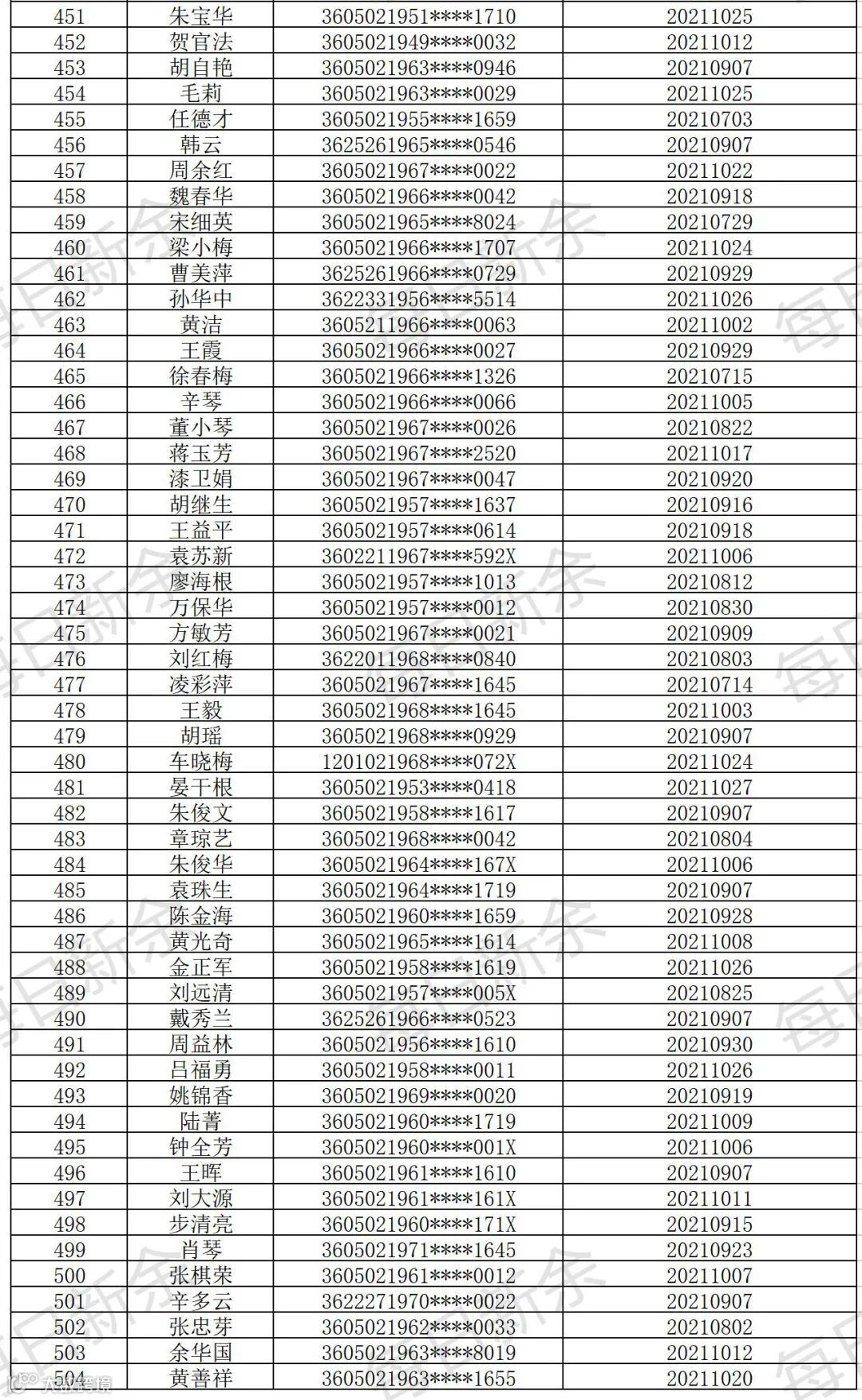 2022年11月,新余市社保中心对2021年10月起在非自然年度(365天内)认证周期内,未进行社保待遇领取资格认证的人员开展了全面筛查,并通过短信、电话方式逐一进行了提醒。截至目前,仍有504名退休人员(具体名单见附件)未进行社保待遇领取资格认证。为有效预防、杜绝冒领社保待遇行为的发生,根据《领取社会保险待遇资格确认经办规程(暂行)》(人社厅发〔2018〕107号)、《江西省推进养老保险待遇领取资格“静默认证”便民化若干措施》(赣人社字〔2021〕232号)等文件相关规定,我中心决定对上述504名退休人员自今年11月起暂停发放社会保险待遇,待其补办认证手续后恢复发放并补发暂停期间的社会保险待遇。此外,对长期未进行待遇资格认证的人员,我中心将安排稽核人员进行待遇领取情况专项稽核,对存在违规领取社保待遇的将依法追缴。