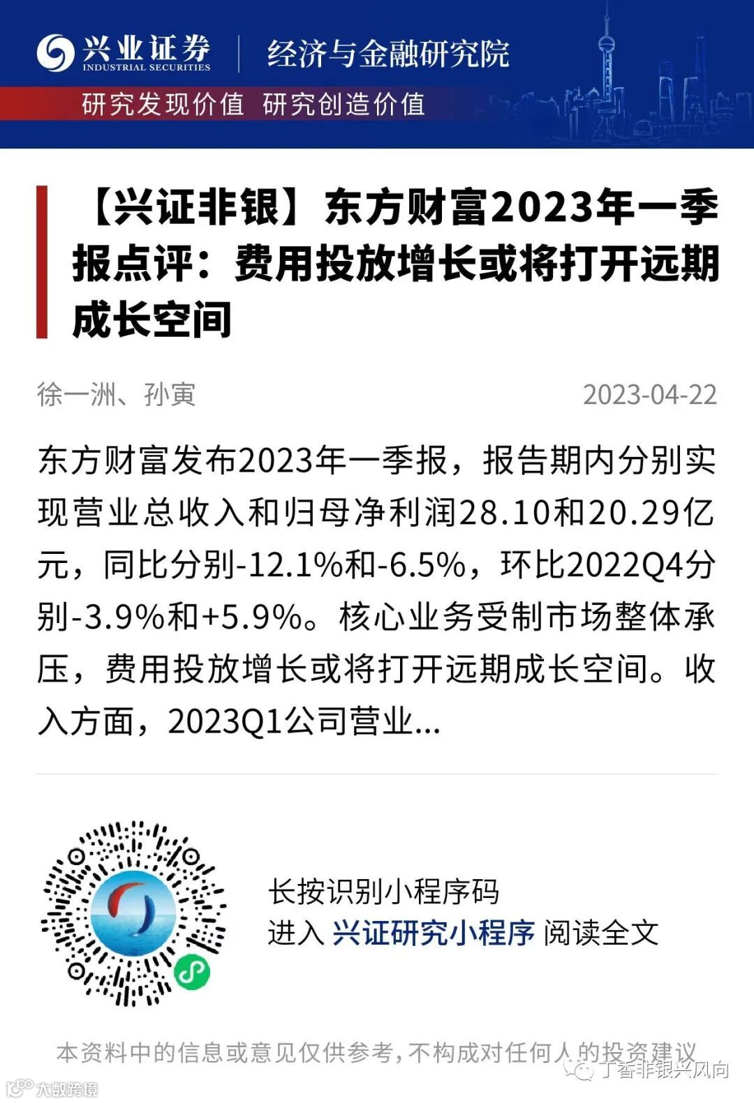 证券研究报告:《东方财富2023年一季报点评:费用投放增长或将打开远期成长空间》