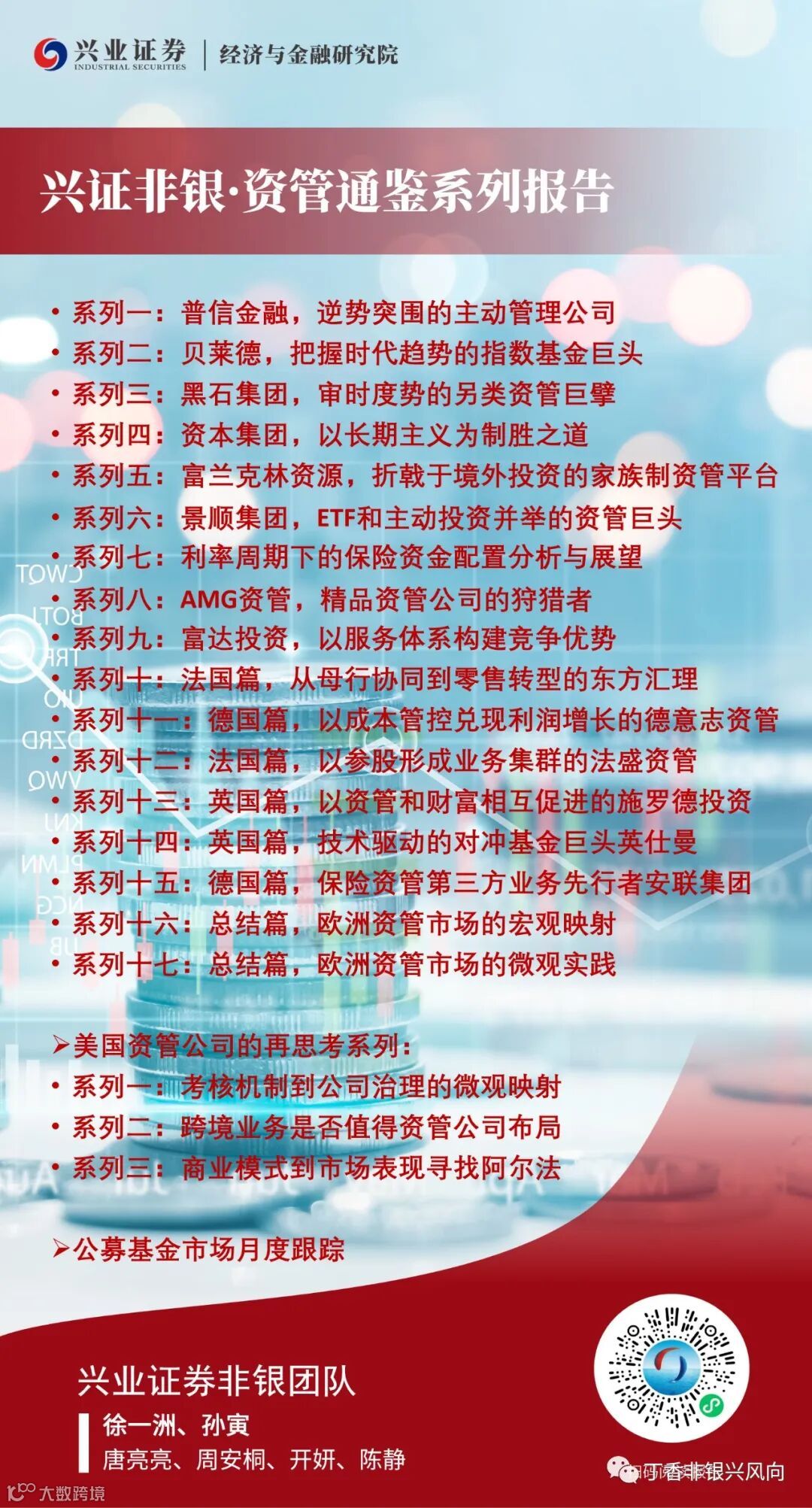 2021年,我们系统性梳理了美国资产管理公司详细的发展历程、业务模式和经营特点,并在此基础上总结出考核机制、跨境业务和产品体系三大核心特点;2022年,我们将在此基础上进一步探索欧洲资产管理市场的经营特点,以飨读者。