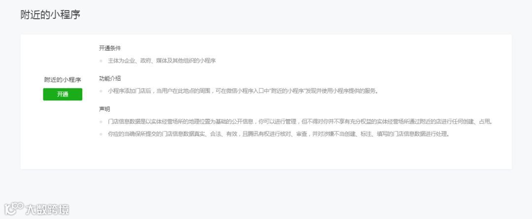 未开通“附近的小程序”的运营者,添加功能插件入口处申请,详情见《附近的小程序使用指南》;