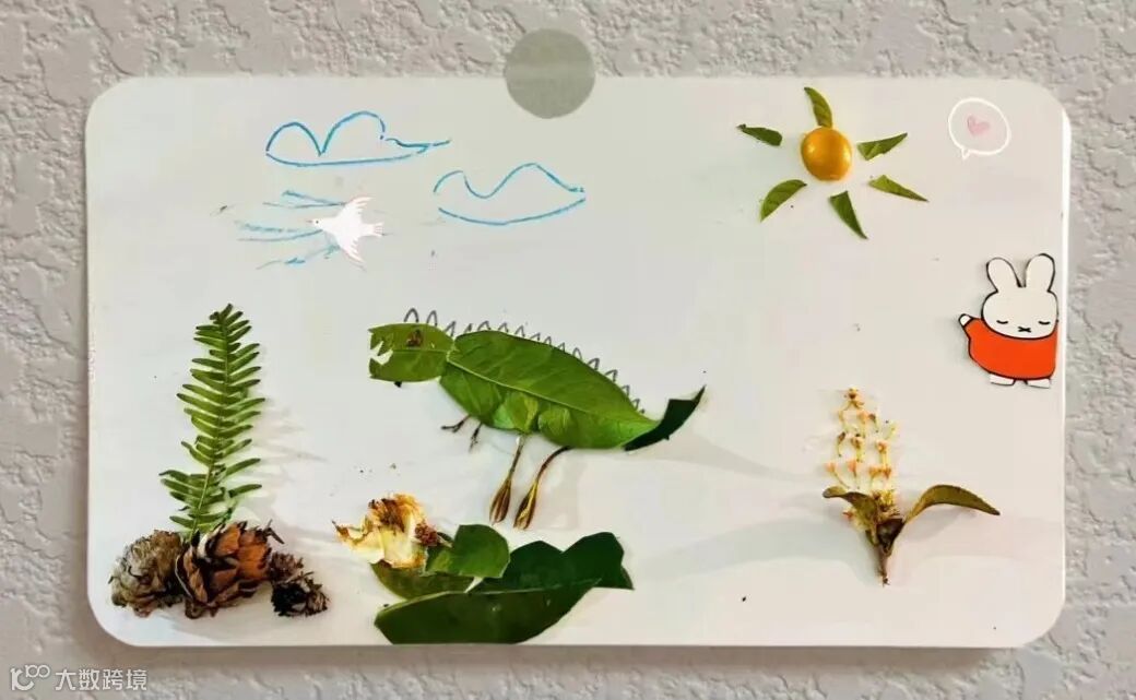 把收集好的材料做成一幅自然画,带回家收藏更有意义喔~