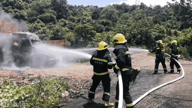 并用水枪对货车进行扑救