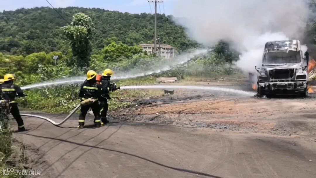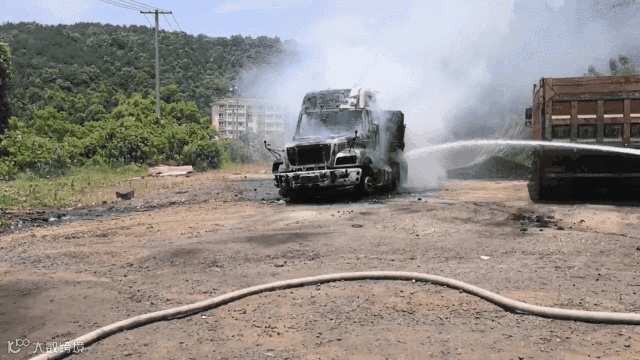 货车驾驶室正在熊熊燃烧
