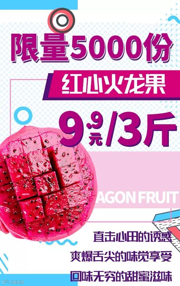 红心火龙果9.9元/3斤 限量5000份!