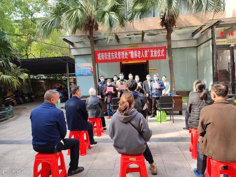 4月2日,在渝水区城南街道东风管理处办公楼前,一场特别的颁奖仪式正在这里举行。75岁廖金华家庭、80岁袁兰秀、85岁吴兰英家庭分别领到了1000元、2000元、3000元奖金。