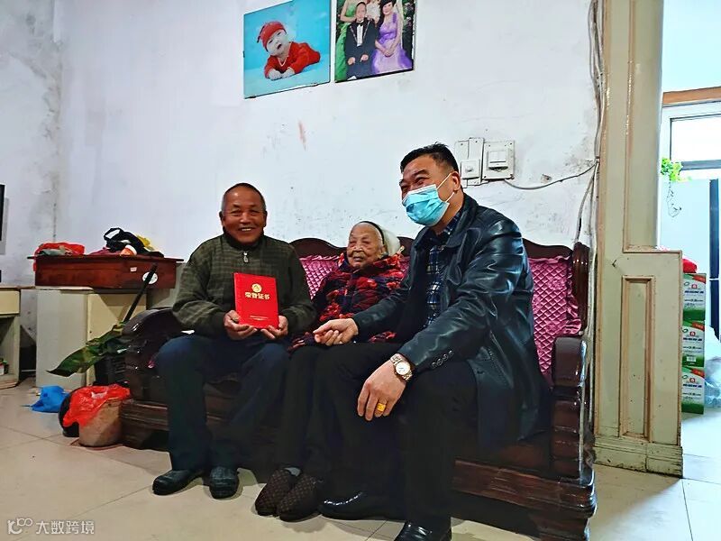 东风管理处领导为今年2月满100周岁的老人家庭送上20000元奖金。