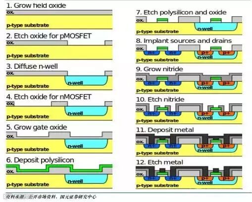 集成电路制造过程可分为晶圆制造和晶圆加工两部分。前者指运用二氧化硅原料逐步制得单晶硅晶圆的过程;后者则指在制备的晶圆材料上构建完整的集成电路芯片。