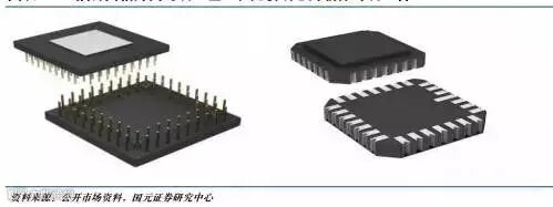 插针网格阵列封装(左)和无引线芯片载体封装(右)