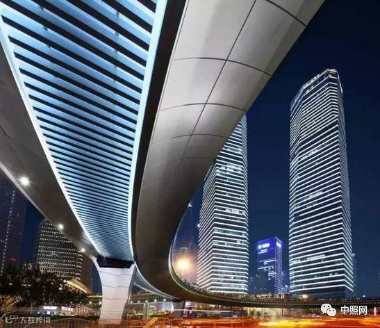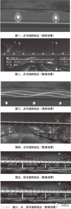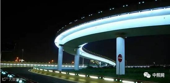 护栏通常是需要灯光渲染的地方,可以显示出整座立交桥的风貌,对立交桥的整体展示有着很大意义。有两种方式可以采用:一种是用连续的线条状发光体勾画出护栏的轮廓;另一种方法是每隔一段距离装设一个点状光源,它既能勾画出护栏的轮廓,又能给人生动活泼之感。