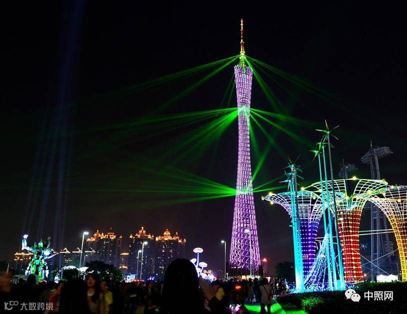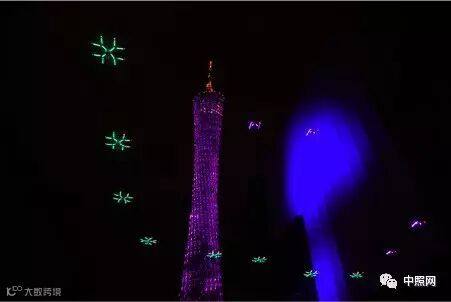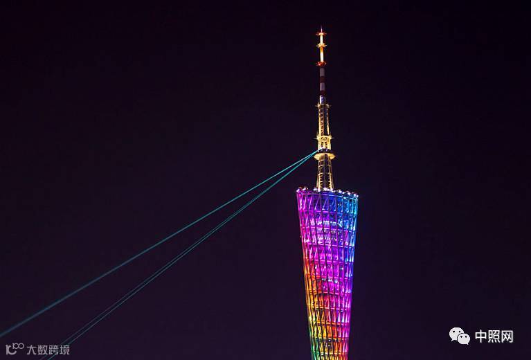 塔顶有三台射程超过1000米的激光灯束,分别指向珠江新城的广州双塔和中信广场;