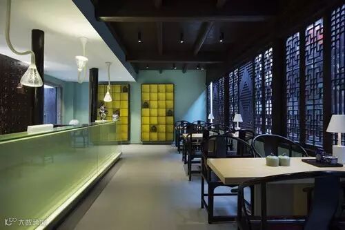 除了保留和恢复其中式的特点,Thomas Dariel也将中西融合在这个室内设计中的表现的淋漓尽致。代表惊蛰节气的阅读室里,配以一个西式壁炉和小型钢琴,不但在中式的氛围中更添一份温暖,更让人有种置身于法国文艺复兴时期的感觉,如此取长补短的结合真是恰到好处。中西餐厅的强烈色彩对比,巨大的悬式吊灯,以及那引人注目的法式花饰瓷砖砌成的吧台让人在一片传统中找到新鲜亮眼之处。更特别的是,装点墙面的各种画像也充分向中国丰富的手工艺品致敬。同时,“水中的墨滴”摄影作品表现出一种结合中国传统水墨书法以及当代的诗歌的感觉。各种中式装饰以及西式装饰的互相混搭营造出现代与古典的别样完美的结合。