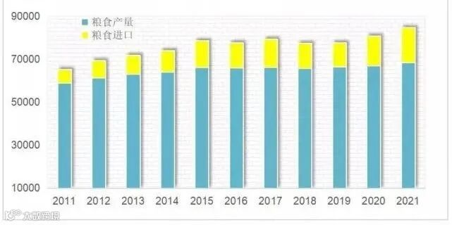2021年我国累计进口粮食1.6亿吨,相当于我国粮食产量的24%,比上年同期增长18%。