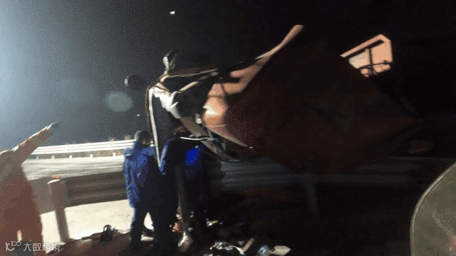 车头因侧翻后撞击护栏导致严重变形
