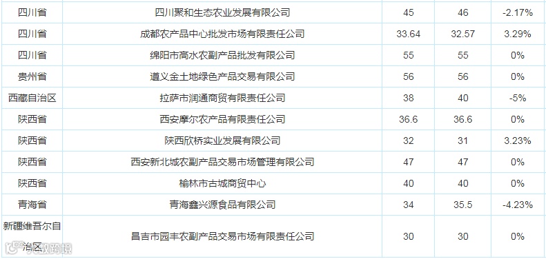 2021年2月24日全国各地整猪批发价格报告(单位:元/公斤)
