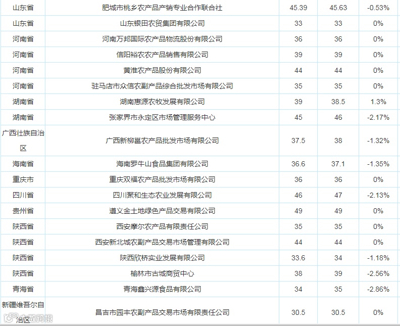 2021年3月8日全国各地整猪批发价格报告(单位:元/公斤)