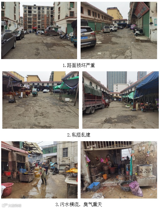 分宜县水果批发市场位于分宜商城北侧,占地面积约9000平方米。市场内有三幢二层门面房,建筑老旧、私搭乱建严重、道路破损、雨水散排、污水横流、活禽屠宰区臭气熏天,环境卫生属于典型的脏乱差。因建成时间较早,现市场亟待改造升级。