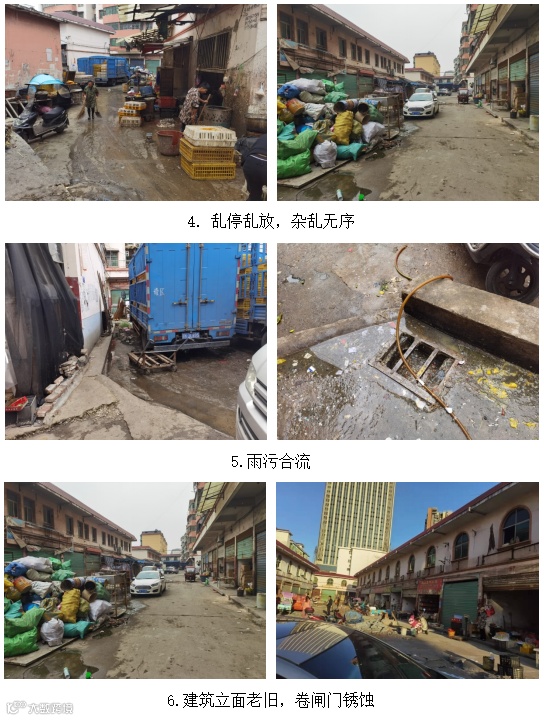 水果批发市场提升主要改造内容包括建筑立面翻新、雨棚及店招改造、维修破损砼路面及车行道加铺沥青、新建人行道、雨污水改造、绿化及照明、施划交通标线及停车位、新建非机动车停车棚等,地面改造总面积约5200平方米、建筑立面翻新面积约4500平方米,工程总投资约400万。