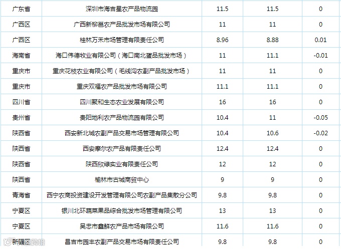 11月24日全国各地鸡蛋批发价格报告(单位:元/公斤)