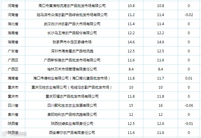 2019年10月28日全国各地鸡蛋价格报告(单位:元/公斤)