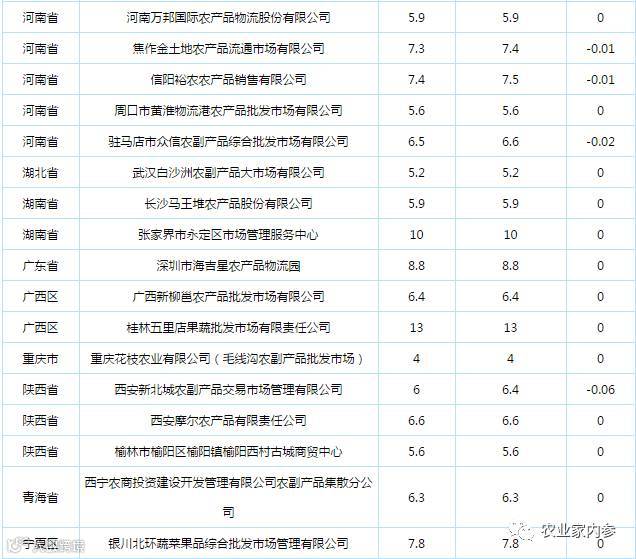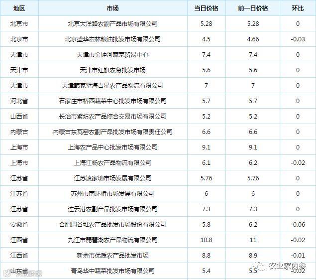 【农业家内参】微信公号每日行情报告(元/公斤)