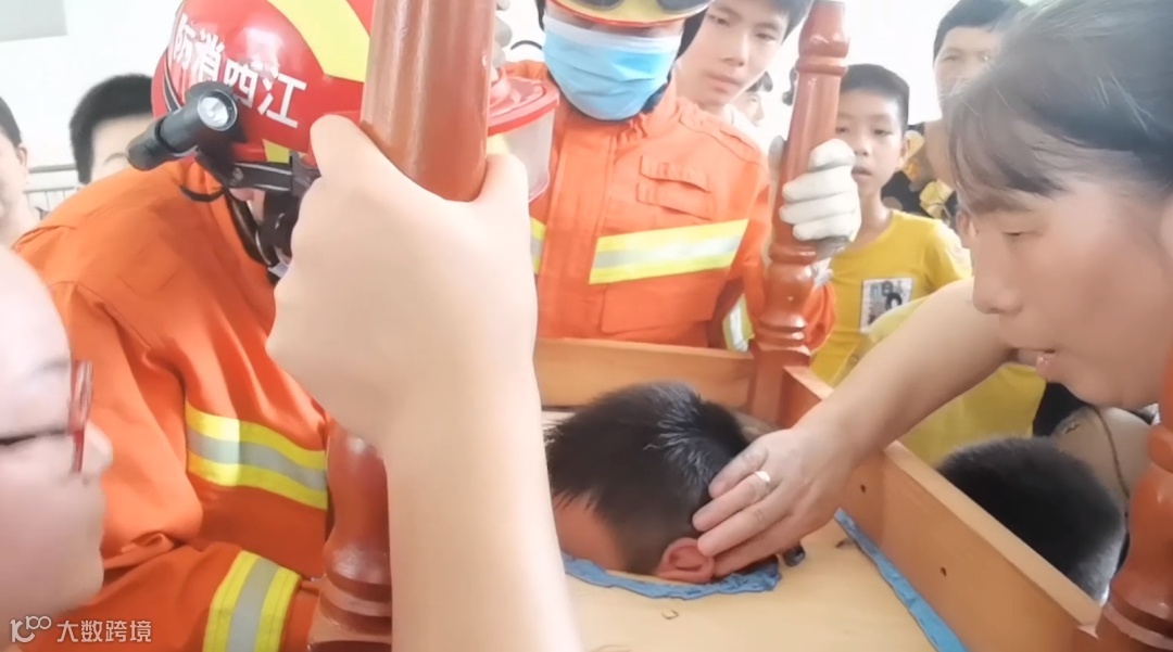 不慎将头倒扣在木凳里