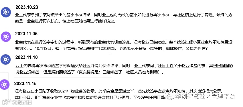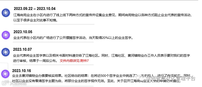 4、有关物业续签的事宜,业委会成员说已公示(实则没公示,有的业主去问了物业前台,得到的回复是24年再公示),物业续签不需要业主参与,他们代表按照流程进行即可。