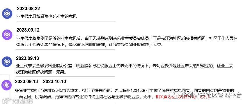 2023年11月28日,全椒县物业股、襄河镇政府、江海社区、江海业主委员会、江海物业,江海热心业主共同参与了协调会。协调会结果:不允许召开业主大会。