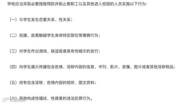 学校应当采取必要措施预防并制止教职工以及其他进入校园的人员实施以下六类行为: