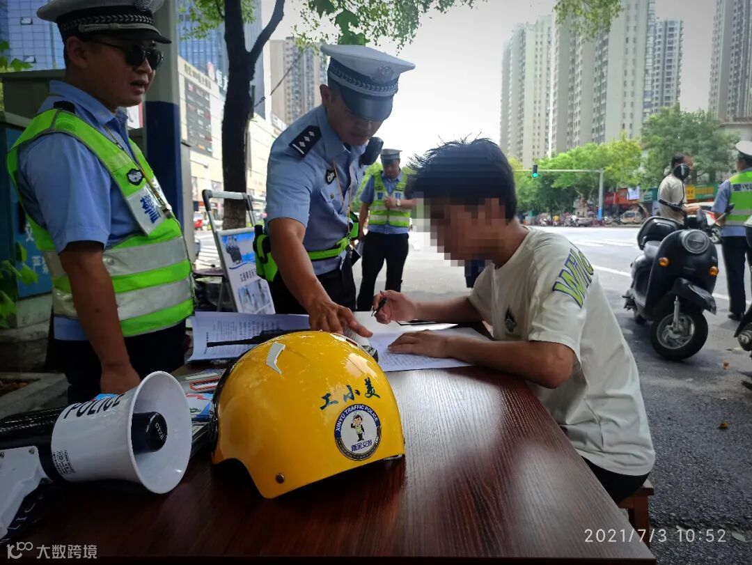 据悉,此次行动,共查处电动车、摩托车驾乘人员未佩戴安全头盔20余起,抄写《中华人民共和国道路交通安全法》80余份,批评教育300余人次,进一步提升了“一盔一带”安全守护行动宣传覆盖率,让更多的群众意识到佩戴安全头盔的重要性。