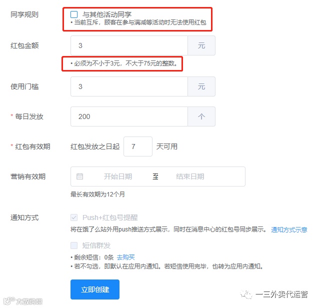 一般我们会针对美团来做精准营销,为什么?对于饿了么来说精准营销是比较吃利润的就算不吃利润也会如图所示对于顾客来说起不到任何作用,饿了么主要区别于同享券与不同享,就如下图,同享券对于商家来说是比较吃亏的,对于顾客来说却是很划算,不过一般商家没有谁会去做赔本买卖,甚至做买卖只做个吆喝,所以商家也不会去用,至于不同享,那就更没意义了设置小了对于顾客来说,就是个摆设,没有实际用途,设置与满减配合顾客得到的实惠不多,也不会选择去用,至于设置的大了,那么跟同享券意义差不多赔钱。所以总的来说不推荐去做饿了么精准营销。